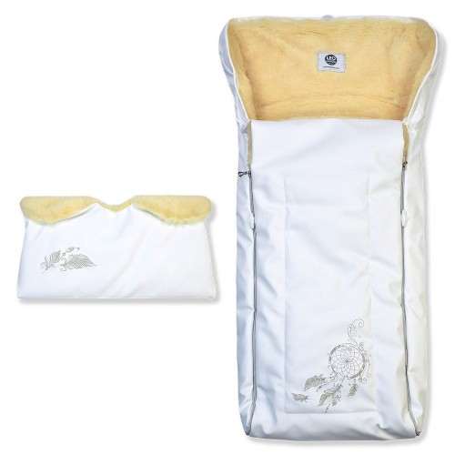 Конверт классической формы прекрасно подойдет и для прогулки в коляске, и для катания на санках. Непромокаемый материал защищает от дождя и снега. Внутренняя подкладка из мягчайшей овчины обеспечит малышу тепло и уют. Удобная муфта позаботится о комфорте родителей. А очаровательные узоры поднимут настроение всей семье!