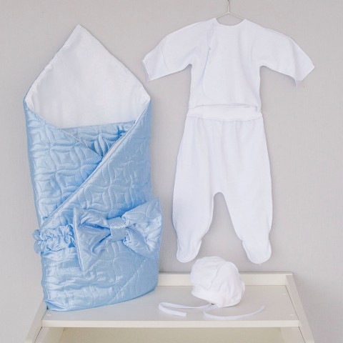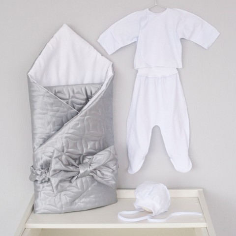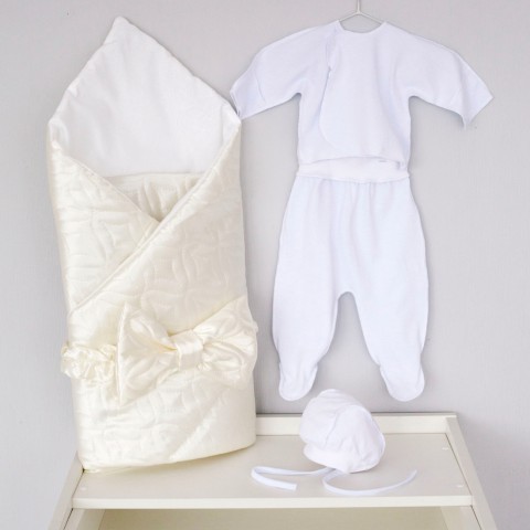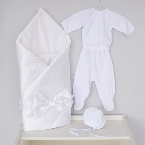 Комплект на выписку 5 предметов Карамелька, зима включает в себя все необходимое для зимних прогулок и выписки ребенка с роддома.