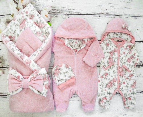 - Комплект на выписку для малыша из хлопкового велюра на трикотажной подкладке.