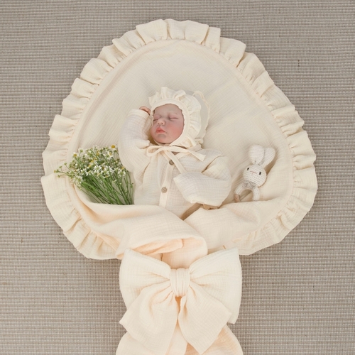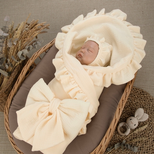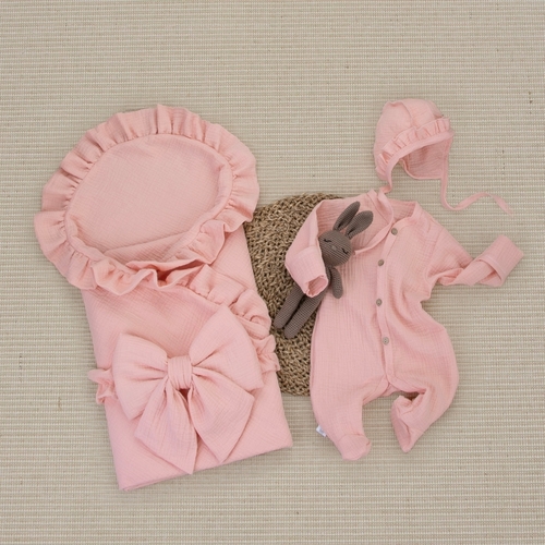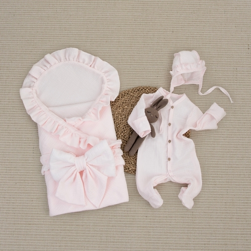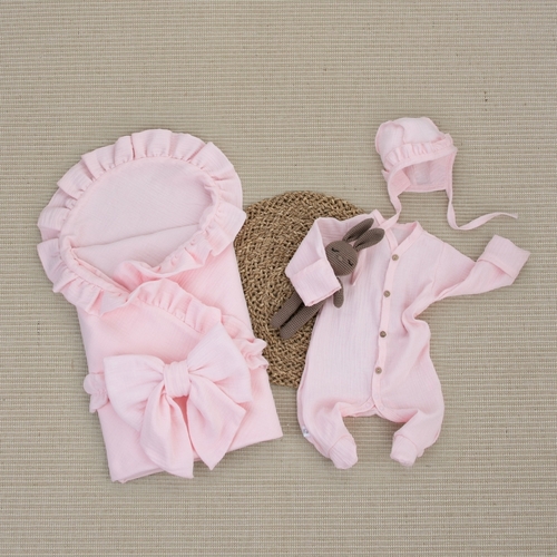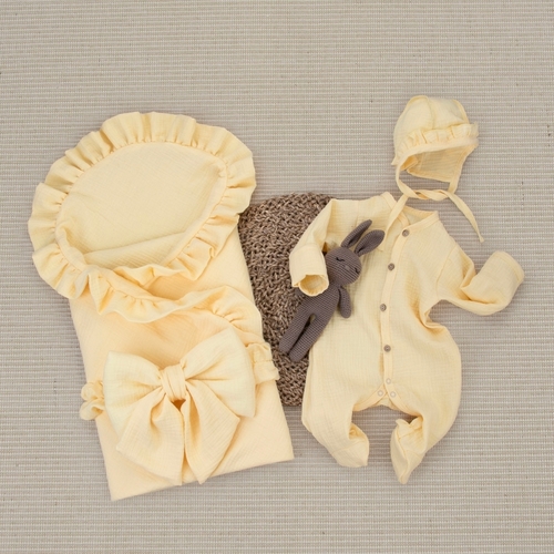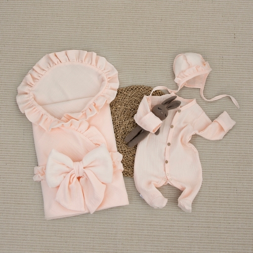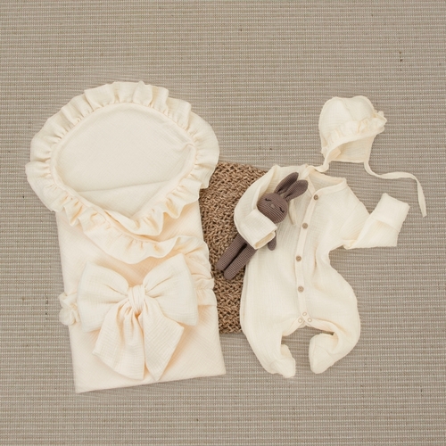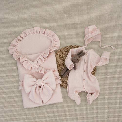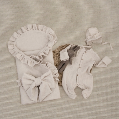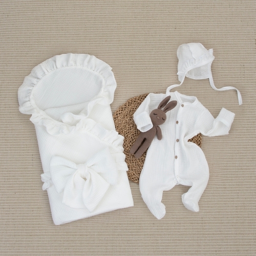 Комплект на выписку 4 предмета KinderLitto "Муслин Рюша. Плед"
