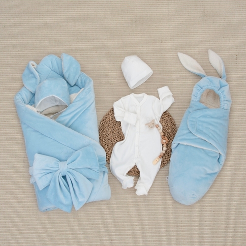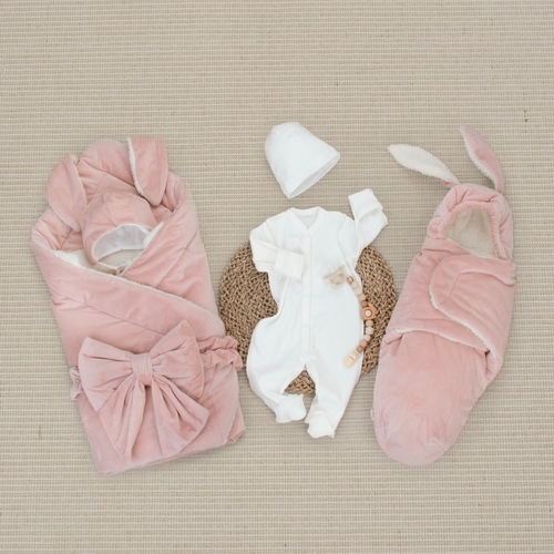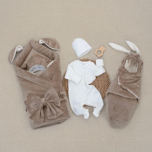 Зимний комплект на выписку 6 предметов KinderLitto "Пушистый Зайка"