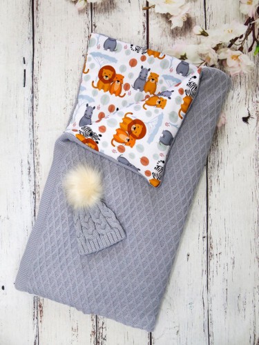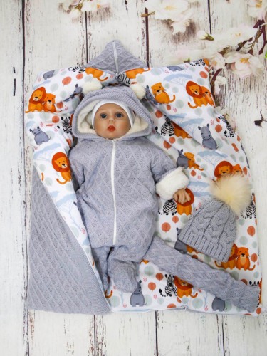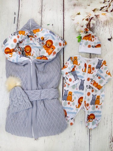 Комплект на выписку демисезонный Сафари Argo арт. 0344 Тёплый, мягкий конверт из вязанного полотна, на трикотажной подкладке, с милым принтом. Конверт трансформируется в одеяло.