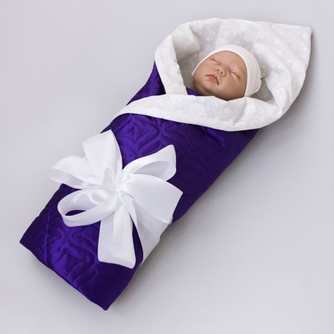 Одеяло на выписку "Карамелька", 100, с лентой, летнее, фиолетовый