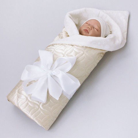 Одеяло на выписку "Карамелька", 100, с лентой, летнее, молочный