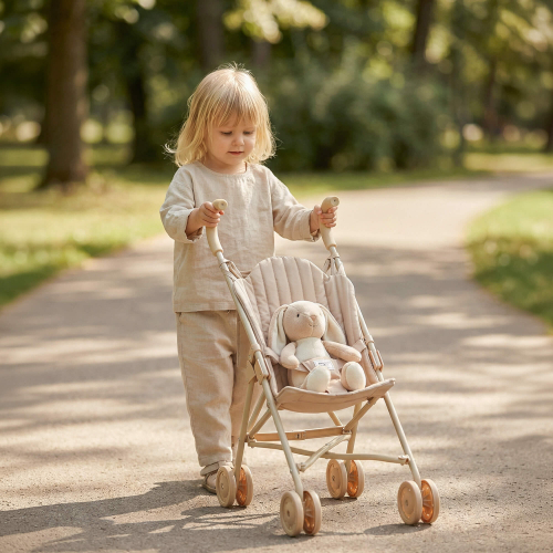 ✔ Надёжная конструкция. Металлический каркас обеспечивает высокую прочность и долговечность. Игрушечная коляска выдерживает нагрузку до 3 кг, что позволяет использовать её даже для самых крупных игрушек и гарантирует безопасность во время активных игр.