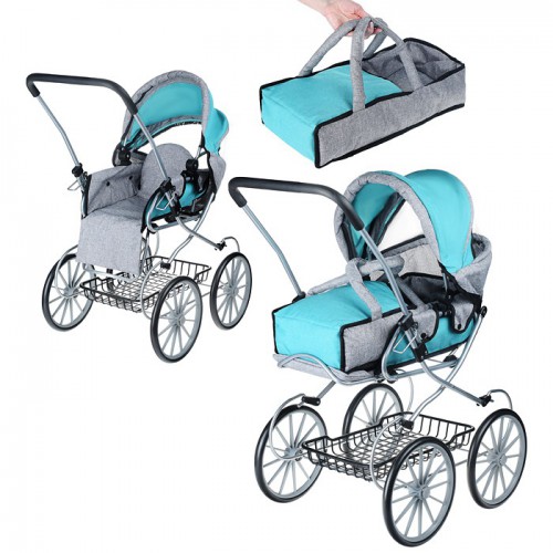 Коляска-трансформер для кукол Melobo 2 в 1 арт. 308880 Все девочки в детстве копируют маму, поэтому им нужна красивая и удобная прогулочная коляска. Эта модель голубого цвета привлечет внимание всех маленьких принцесс. Коляска изготовлена из металла, имеет сетку, поддон, в котором хранится все самое необходимое для игры. Она легко трансформируется в люльку с удобными ручками. Эта игрушка поможет в ролевых играх и позволит девочкам почувствовать себя заботливыми мамами.