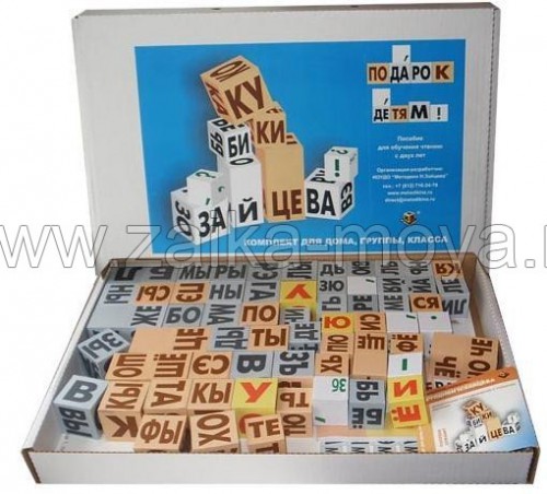 Комплект для дома и малых групп. Известнейшая методика по обучению чтения уже с полутора-двух лет. Четырех-пятилетки начинают читать через несколько получасовых занятий, шести-семилетки - на втором - третьем. Кубики картонные, собранные, сразу готовые для занятий.