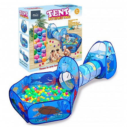 Игровой Дом Pituso + 100 шаров Океан (конус+туннель+сухой бассейн), 320*120*92 арт. J1088 Оригинальный игровой домик-палатка для веселых ребятишек. В нем запросто можно нескольким детям. Яркий и веселый, этот домик будет хорошим укрытием для ваших малышей.Уютная и вместительная палатка замечательно подойдёт как для игр в помещении, так и для летнего отдыха детей за городом, на даче или пикнике
