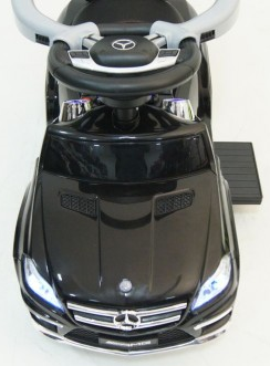 Детский толокар Mercedes RiverToys Арт. A888AA-H - современный толокар, до мельчайших подробностей повторяет дизайн взрослого Mercedes-Benz. Такой подарок очень понравится малышу, предназначена для детей от года до 3-х лет. Миниатюрный автомобиль имеет мягкое кожаное сиденье, музыкальный руль, управляющий передними колесами, и фары, способные подавать световые сигналы, как у настоящего авто. И это далеко не все: малышей приведут в восторг светящиеся спидометр и датчик горючего, багажник под сиденьем. А взрослые оценят возможность трансформации модели в качалку, наличие выдвижных подножек и фиксаторов безопасности, исключающих падение маленького водителя, устойчивость модели, прочность пластикового корпуса, удобство съемной родительской ручки и резиновые колеса, издающие минимум шума при движении.