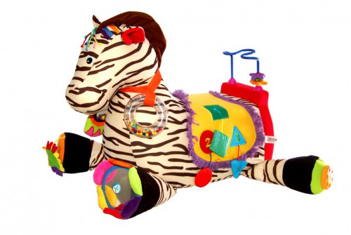 Посредине спины зебры крепится седло с различными игрушками;