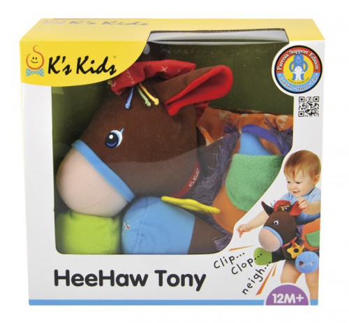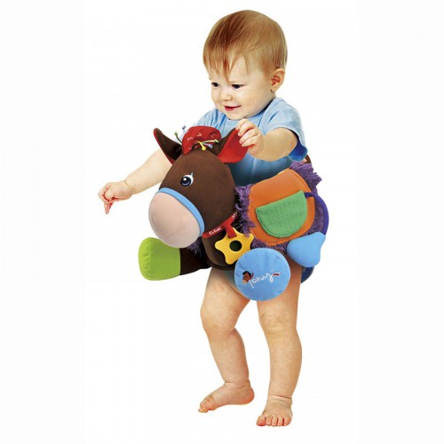 Развивающая игрушка Ковбой K's Kids арт. KA655 С этой уникальной мягкой развивающей игрушкой любой малыш сможет почувствовать себя лихим ковбоем! Игрушка сшита в виде коня (которого зовут Тони), но задняя часть лошадки трансформирована в широкий мягкий пояс, который легко обвернуть вокруг тела ребенка. Таким образом создается иллюзия того, что ребенок сидит на лошадке. Еще у игрушки присутствует звуковой модуль, который воспроизводит разные подбадривающие маленького ковбоя эффекты. Лошадку можно будет постирать, предварительно вынув электронный блок.