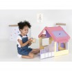 - Комплектация: конструкция домика, стол, 2 стула, шезлонг, гардеробная, лестница, набор наклеек.