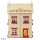 В домике 3 этажа. Задняя стенка дома глухая, а лицевая часть полностью открыта, позволяя ребёнку играть в нём.