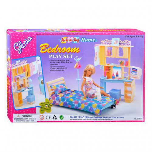 Для разнообразия игры этот набор очень пригодится. В игрушечной спальне можно обновить интерьер. Мебель выполнена в светлых спокойных тонах. Есть напольная вешалка, где можно перед сном развесить вещи. Кровать не займет много места, так как она односпальная. Стол очень удобный, есть ящички и полочки.