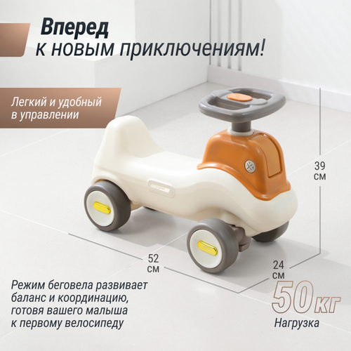 Игрушка сочетает в себе функции классической лошадки - качалки, беговела и балансборда, что позволяет ребенку наслаждаться игрой на разных этапах его развития. Вначале малыш сможет кататься на ней, раскачиваясь взад-вперед, затем легко преобразовать её в беговел от 1 года, который поможет развивать навыки ходьбы, а после использовать как балансборд для развития координации.