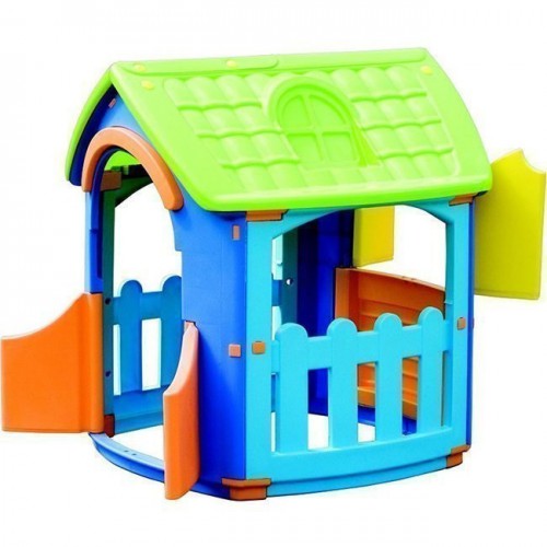 Складной яркий пластиковый домик – прекрасное решение для обустройства собственного пространства Вашего малыша. Для детей очень важно иметь убежище, соразмерное их росту. Небольшой игровой домик с распашными дверками, яркими стенами и крышей может сопровождать малыша и на загородный отдых – его очень просто собирать, разбирать и перевозить на легковом автомобиле. Стены домика выполнены в виде заборчика – это позволяет ему, с одной стороны, беречь малыша от открытых лучей солнца и создавать ощущения отделенного пространства, а с другой – хорошо проветриваться и не нагреваться внутри.