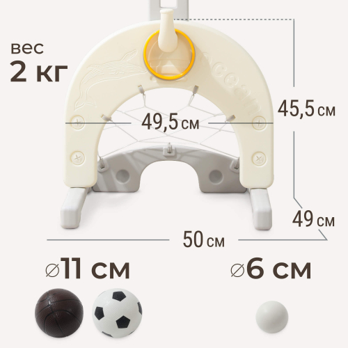Модель отличается лаконичностью дизайна и приятной бежевой цветовой гаммой, гармонично сочетающейся с любым интерьером помещения. Легкость сборки изделия значительно упрощает процесс установки на игровой площадке, позволяя завершить монтаж всего за 15 минут. Размеры игровой стойки составляют 50х49х105см, обеспечивая достаточную площадь для активной игры и развития физических способностей ребенка.