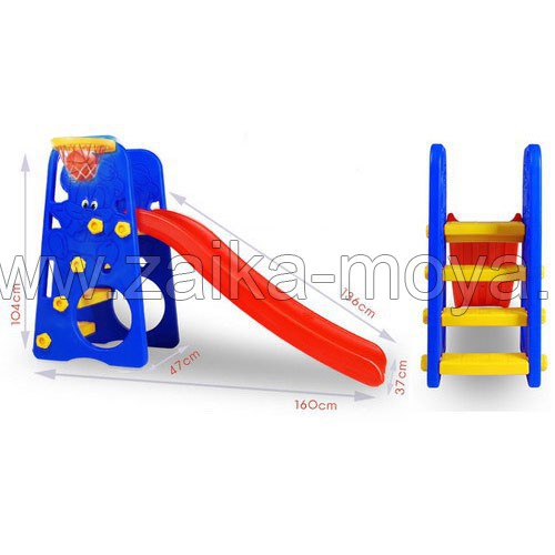 Горку волнистая с баскетбольным кольцом и мячиком можно устанавливать в любом месте, как на улице так и дома.