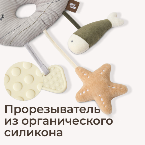 Развивающая игрушка-прорезыватель для новорожденных 0+ UNIX Kids Кит создана специально для малышей с первых дней жизни. Эта оригинальная подвесная игрушка незаменима в развитии вашего ребёнка благодаря своему уникальному дизайну и высоким стандартам качества материалов.