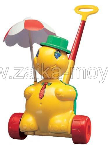 Устойчивая каталка, удобная ручка, яркие цвета и милая улыбка Тортилы делают игрушку очень привлекательной для малышей.