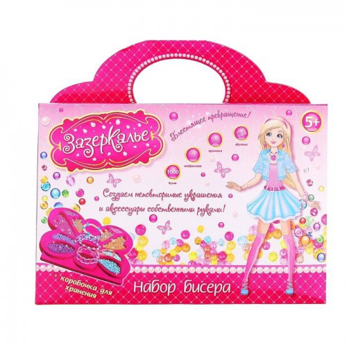 В наборе есть все, что бы ваша девочка почувствовала себя дизайнером украшений – круглые бусины разных цветов и леска. Отдельное удовольствие – демонстрировать аксессуары собственного производства и собирать комплименты! А хранить готовые украшения можно в замечательной коробочке в виде бабочки!