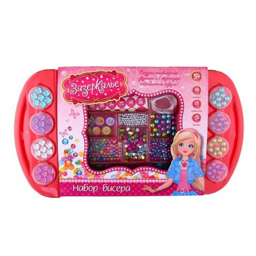В наборе есть все, что бы ваша девочка почувствовала себя дизайнером украшений – бусины разных цветов и форм, леска, наклейки с русскими буквами, которые можно приклеить на круглые плоские элементы. Бисероплетение – отличное занятие для совместного досуга. Отдельное удовольствие – демонстрировать аксессуары собственного производства и собирать комплименты!