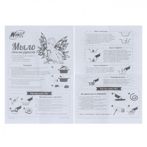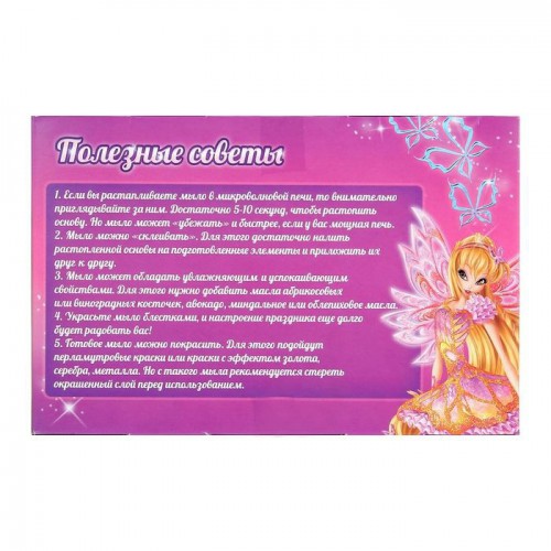 Теперь полюбившихся героев из мультсериала про феечек Винкс можно брать с собой ванну! Сделай три душистых разноцветных мыльца в стиле Винкс, четко следуя инструкции из набора. Яркая упаковка этого творческого набора позволит использовать его и в качестве достойного подарка! Также на коробке написано секретики для получения лучшего результата своих трудов.