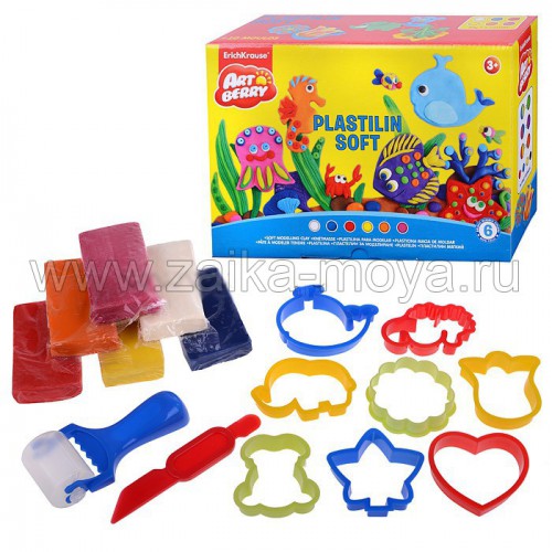 Игровой набор с формочками и мягким пластилином в разноцветных брусочках весом 50 г. предлагается детям, которым нравится создавать интересные сюжетные композиции. Мягкий пластилин идеально подходит для комбинированной техники лепки, сочетая рисование пластилином на плоской поверхности с объемными фигурками.