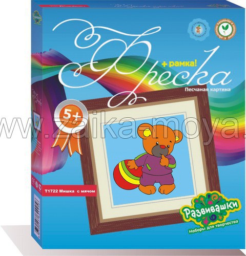 Фреска "Мишка с мячом" - это классический набор с использованием трехслойной клеевой основы. Огромное удовольствие от работы и результата гарантировано не только детям, но и родителям. В комплекте пластиковая рамка с подставкой. Забавный рисунок, мелкий песок и яркие цвета. Работа с фреской развивает мелкую моторику рук, координацию движений и усидчивость ребенка. Состав: модель рисунка 14,5 х 14,5 см., набор цветного песка, пластиковый стек, пластиковая рамка, инструкция, цветная коробка.