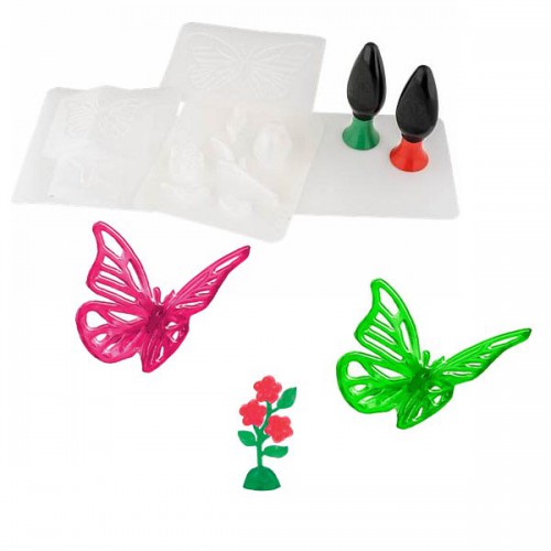 Набор 3D Magic для создание объемных моделей бабочка и цветок арт. 82001 совершенно новый, уникальный набор для творчества. С его помощью не только дети, но и взрослые с интересом и удовольствием смогут создавать различные 3D модели. Специальный гель нужно распределить по формочке, а затем поместить в ультрафиолетовую лампу (не входит в комплект), где он застынет. Состав геля совершенно безопасен для здоровья.