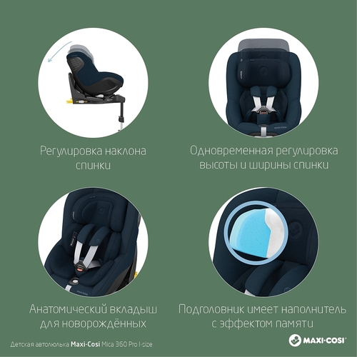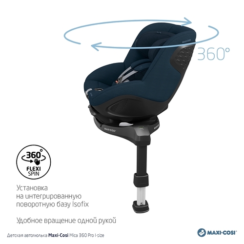 Автокресло Maxi-Cosi Mica 360 Pro i-Size - детское автокресло с базой i-size для ребенка с рождения до 4 лет с расширенным функционалом и высокими показателями безопасности. Так же новинка оснащена уникальным механизмом SlideTech, позволяющим не только поворачивать кресло на 360 градусов, но и выдвигать чащу кресла из автомобиля для более комфортной посадки и высадки ребенка.