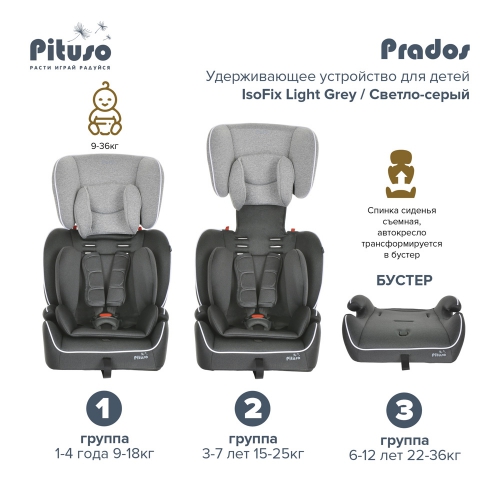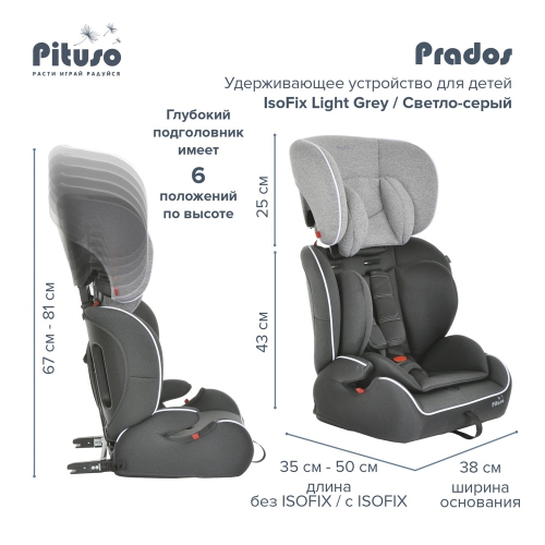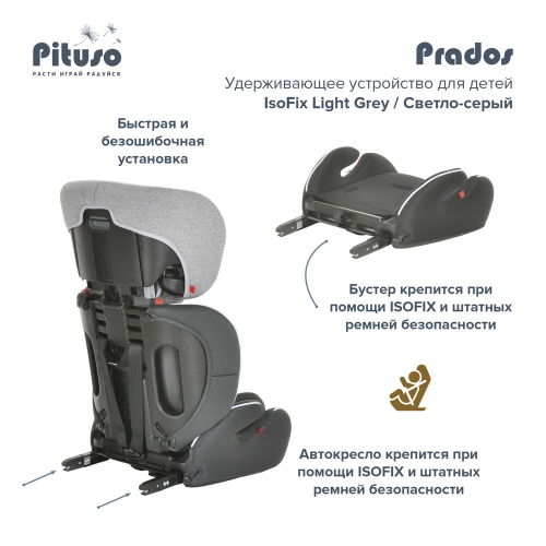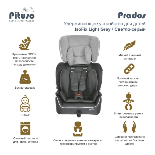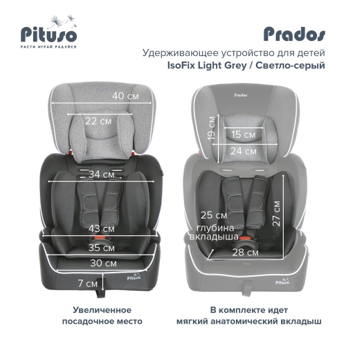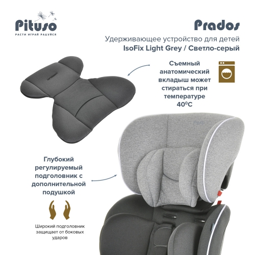 Автокресло Pituso Prados Isofix, 9-36 кг Универсальная модель детского автокресла. В комплекте идет мягкий анатомический вкладыш.