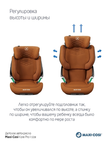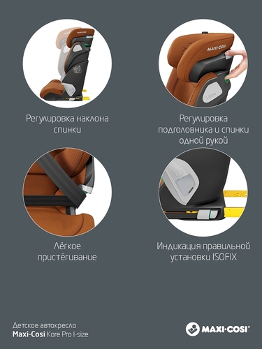 Автокресло Maxi-Cosi Kore Pro i-Size - автомобильное кресло, которое растет вместе с ребенком по высоте и ширине и рассчитано на рост от 100 до 150 см. Модель относиться к группе 2-3 и предназначена для детей от 3,5 лет. В таком возрасте дети хотят самостоятельности и новое кресло дает им такую возможность. Специальный дизайн модели позволит детям самостоятельно залазить и слазить с кресла и пристегиваться. Уникальная система Click Assist light подсветит замок, чтобы ребенку было удобнее и проще пристегнуться. Kore Pro i-Size также предлагает лучшую безопасность. Он соответствует самым последним и самым высоким стандартам безопасности - правилам размера i - в сочетании с системой Side Protection.