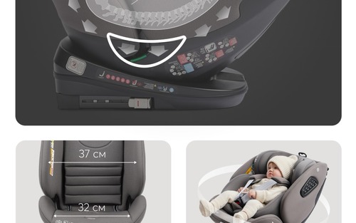- Поворотная база: 360° Во-первых, она дает возможность для 2 способов установки автокресла: лицом назад и лицом вперед. Вы можете усадить малыша до 2 лет против движения, а подросшего ребенка — по ходу движения. Первый вариант самый безопасный для маленького ребенка, потому что при резком торможении могут пострадать мышцы шеи (у малышей до 2 лет они еще слабые). А также в случае аварии основная сила удара придется на спинку автокресла, что сильно уменьшит риск травм. Второе преимущество поворотной базы автокресла в том, что его можно развернуть к двери машины, чтобы ребенка было легче усадить!
