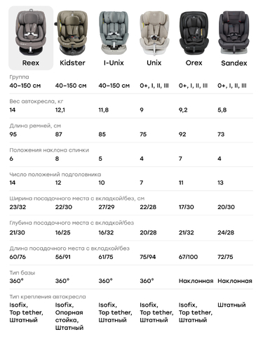 Представляем Happy Baby Reex – автокресло, которое станет вашим верным спутником на долгие годы, надежно оберегая вашего ребенка с первых дней жизни и до 12 лет. Это автокресло, прошедшее строгие испытания на соответствие стандарту безопасности i-Size (ЕЭК ООН № 129), подарит вам уверенность в каждом путешествии. Reex обеспечивает усиленную боковую защиту и отличается удобством использования благодаря повороту на 360°, позволяющему без труда усадить малыша. Для максимальной безопасности рекомендуется устанавливать кресло против хода движения до 15 месяцев.