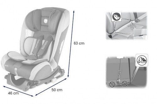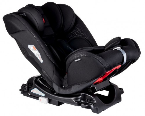 Кресло поворачивается на 180 градусов и может переводиться в один из трех режимов: от сидячего до лежачего. Комфорт ребенка обеспечивается дополнительной подушкой, которая фиксирует шею в определенном положении и предоставляет дополнительную защиту в случае столкновения. На ремнях и поясах кресла пришиты специальные подушечки, которые предотвращают натирание кожи.