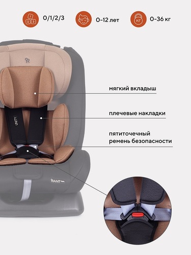 Автокресло Rant Basic Unity, 0-36 кг покорит вас: всеми регулировками, соответствующими группе; 5-точечным ремнем безопасности; мягкими вкладышами для комфорта; подушкой для выравнивания спального места для младенца; тактильно приятным гипоаллергенным чехлом.
