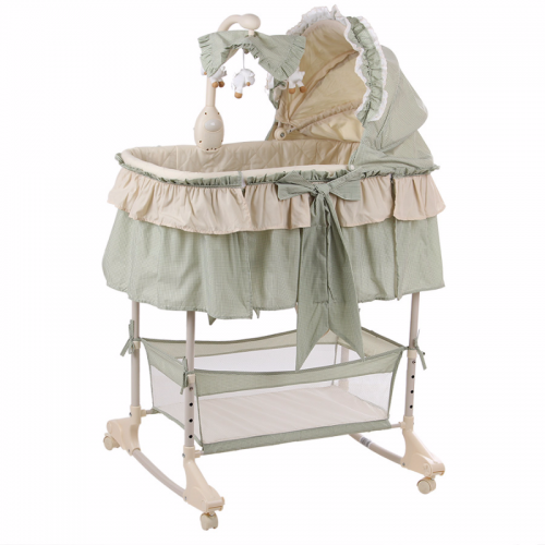 Колыбель-качалка Pituso Armonia 4 в 1 на колёсах, арт. PC 200 GCI — многофункциональная модель с очаровательным дизайном, выполненная из облегченного металла и антиаллергенного текстиля. Люлька Pituso 4 в 1 оснащена электронным мобилем, который проигрывает колыбельные и дарит нежный мягкий свет. Для убаюкивания малыша предусмотрены полозья и функция вибрации. Колыбель-качалка Питусо 4 в 1 имеет пять уровней высоты для установки люльки. В нижней части конструкции расположена широкая корзина для игрушек и постельных принадлежностей. Для простоты передвижения по комнате есть съемные колеса.