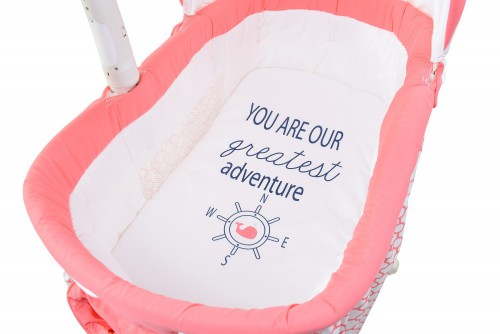 Маятник поперечного качания позволяет раскачивать не всю колыбель, а только уютное спальное место, что наиболее безопасно. Музыкальный мобиль, со встроенными мелодиями, дополнительно позволяет подключать к нему любые MP3 устройства и проигрывать уже Ваши мелодии или собственные колыбельные песни. Многофункциональная колыбель Noony Lula значительно облегчает уход мамы за новорожденным.