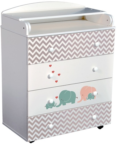 Компактный пеленальный комод ByTwinz Story Мэри оснащен 4 вместительными ящиками на шариковых направляющих.
