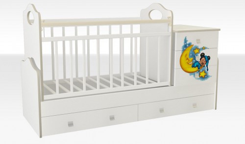 Детская кроватка-трансформер Infanzia с поперечным маятником с УФ печатью — это модель для тех, кто ценит практичность. Родители выбирают её за многофункциональность, эргономичность и стильный дизайн с фигурными спинками. Модуль классической кроватки для новорождённых можно использовать с рождения крохи и до достижения им 4-х лет. У неё безопасные закруглённые углы и обтекаемая форма. Комод можно установить как справа, так и слева от кроватки. Столешницу можно использовать в качестве пеленального столика. Детское постельное бельё удобно хранить во вместительном выдвигающемся ящике, который обеспечит чистоту и порядок. В тумбочке можно разместить пижаму и другую одежду вашего чада. Когда малыш подрастёт, трансформируйте изделие в большую кровать без бортиков, сняв тумбу со шкафчиками. На ней ребёнок будет спать до подросткового возраста.