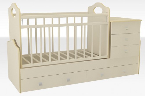 Кроватка-трансформер изготовлена из натуральной древесины и ЛДСП. Изделие соответствует современным стандартам качества и безопасности детской продукции.