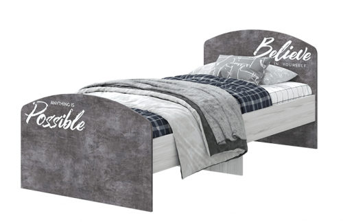 Кровать Оливер 90х200, Можгинский лесокомбинат В дизайне подростковой коллекции Оливер от Можгинского лесокомбината используется сочетание цвета темного камня, белого и фотопечати, что позволяет создать интерьер в современном стиле: лофт, минимализм, индастриал. Детскую в стиле лофт непременно оценят подростки. Компактные размеры кровати позволяют оставить в детской комнате пространство для игр.Кровать выполнена из ЛДСП и украшена фотопечатью.