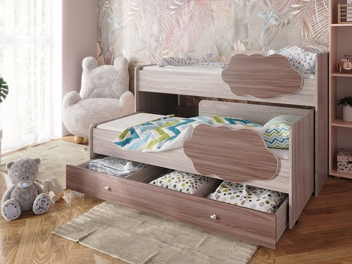 Выкатная двухъярусная кровать Соник с ящиком занимает минимум полезной площади.
