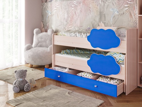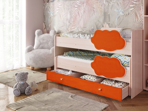 Выкатная двухъярусная кровать Соник с ящиком занимает минимум полезной площади.