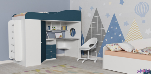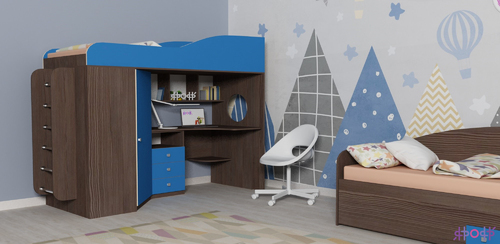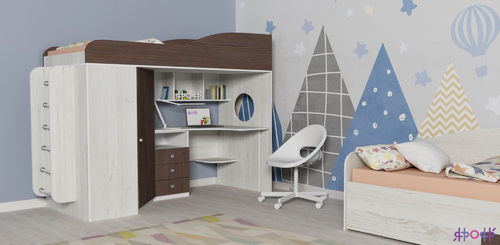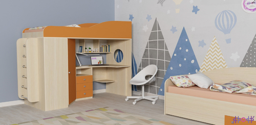 Кровать чердак Ярофф Кадет 1 с металлической лестницей оснащен одним спальным местом, письменным столом с тремя выдвижными ящиками под столешницей, полкой над столешницей и угловым шкафом для одежды. Даная модель подойдет как для детей младших классов, так и для детей более старшего возраста. Такая кровать поразит вас своей компактностью, вместительностью и практичностью.