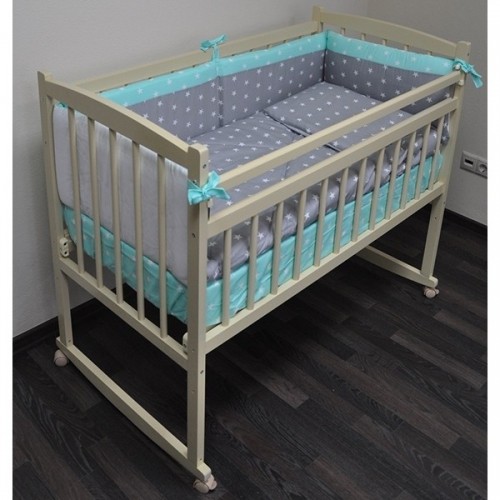 Кровать детская Бэби 2 колесо,качалка с опускающейся передней планкой изготовлена с учетом действующих ГОСТов из экологически чистого материала - древесины березы, что гарантирует долговечность и прочность кроватки.