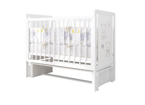 Кроватка Indigo Happy Friends, поперечный маятник — это идеальное сочетание качества и удобства для современных родителей, которые ценят стиль и практичность. Белый универсальный цвет гармонично впишется в любой интерьер, а рисунок милых мишек на боковом торце создаст уют в детской комнате.