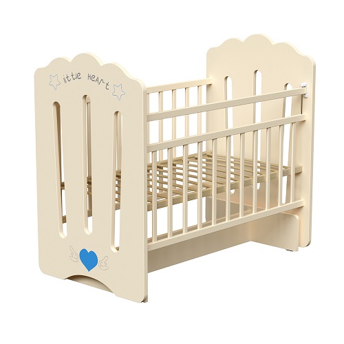 Кроватка ВДК Little Heart поперечный маятник Уютная кроватка для деток с рождения и до трех лет. Оригинальный дизайн отличается красивыми резными аппликациями, которые дополнены милыми рисунками. Выполнена в двух цветовых вариациях: белый и слоновая кость, поэтому прекрасно впишется в интерьер любой детской комнаты. Оснащена колесной базой, полозьями и маятником для укачивания. Все механизмы легко меняются! Кроватка выполнена из экологически чистых материалов безопасных для детей.