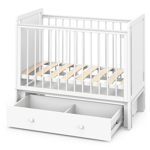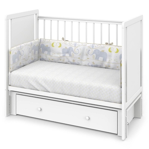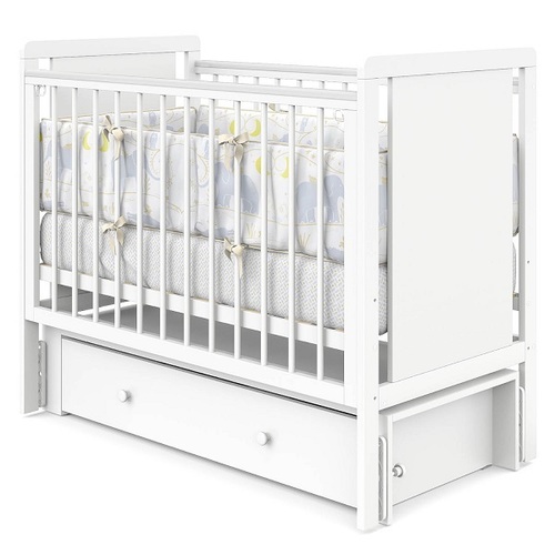 Кровать для новорожденного выполнена в классическом белом цвете, что делает её универсальным выбором для любого интерьера детской комнаты. Массив березы, из которого изготовлена кроватка, гарантирует изделию прочность и экологичность, а использование гипоаллергенных красок при производстве изделия - безопасность для малышей.